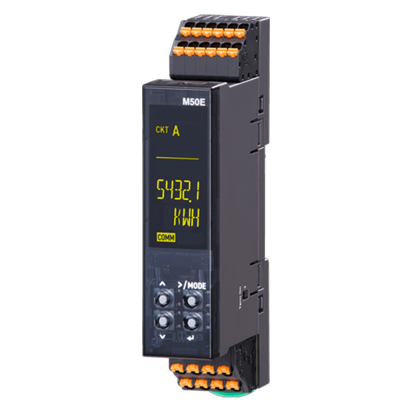 Multi Power Transducers, featuring the 41 mm (1.61 in.) deep (55 mm or 2.17 in. for M50EXWTU), terminal block style housing, are suitable for installation in a tight space of breaker boxes or wall-mounted panels.