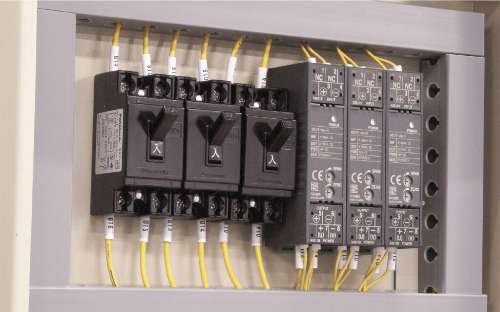 M5 series can be installed on thin panels where breakers and other low-profile devices are installed.